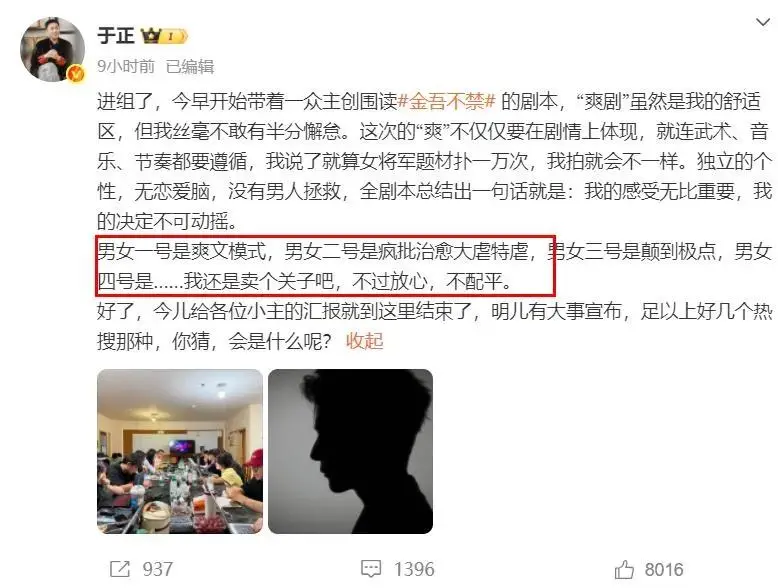 于正表示:《金吾不禁》男女主开启爽文模式,女二和男二是疯批治愈且大虐特虐,女三和男三是颠倒极致,女四和男四是……在这部剧中,男主是周柯宇和赵晴,女二和男二是夏之光马秋元,女三和男三是陈钰琪和牛骏峰,女四和男四是王佳怡和姚弛。
