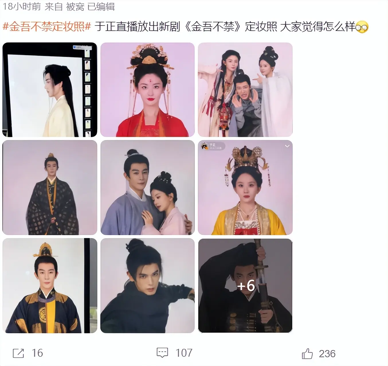 在于正的努力宣传下,《金吾不禁》的热度还是不错的,然后网上传出《金吾不禁》主演的定妆照,看到定妆造型后,网友们只能用“一言难尽”来形容。